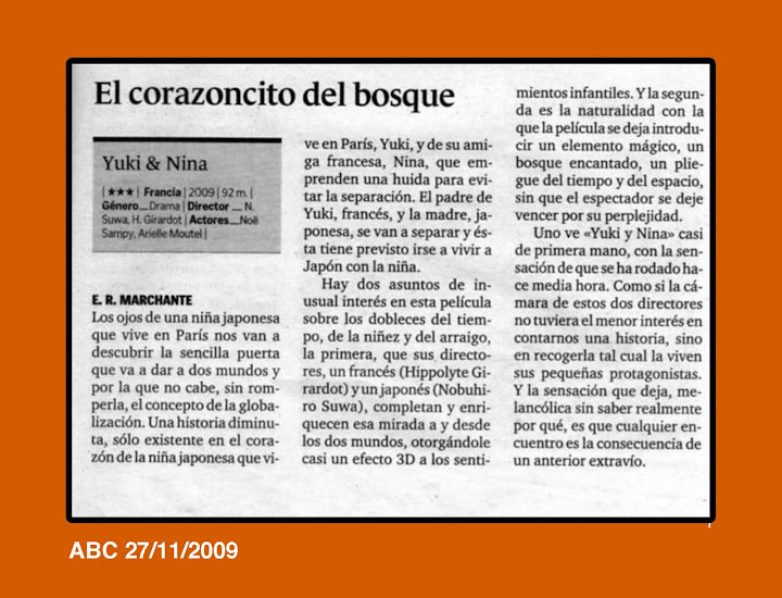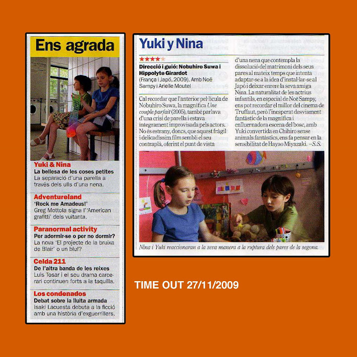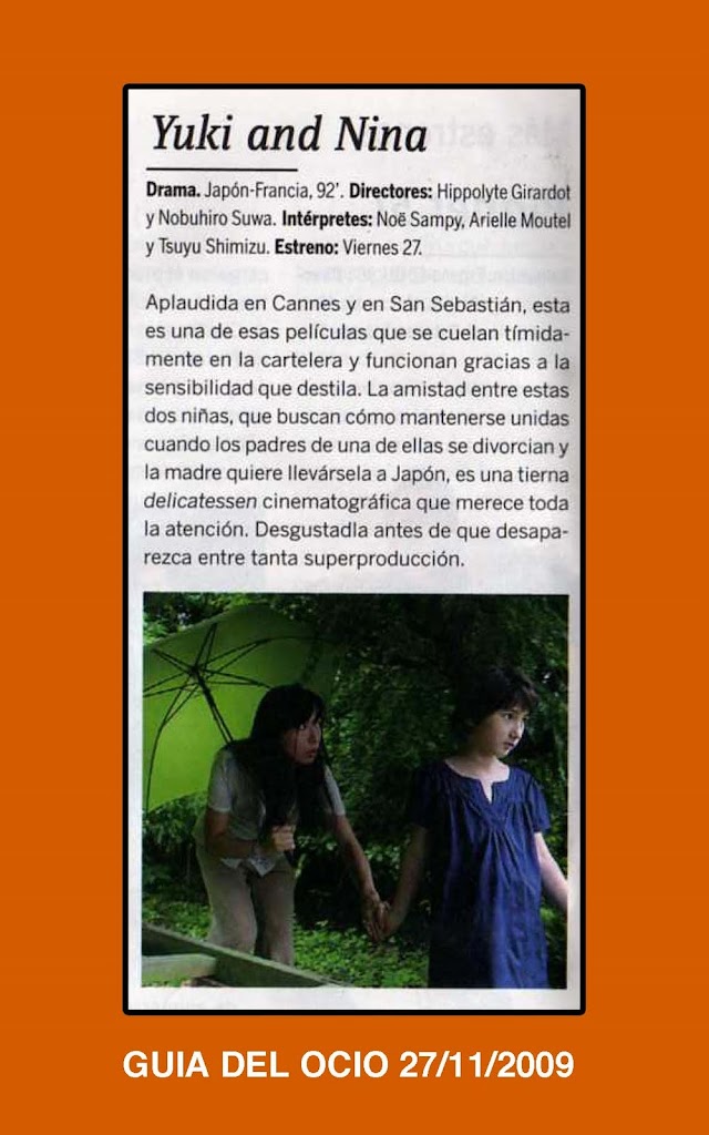 En Intermedio estamos de enhorabuena, los periódicos nos han tratado muy bien a la hora de comentar nuestra nueva película Yuki & Nina. Os dejamos algunas de las frases que se han escrito y los artículos enteros (sólo tenéis que clickar en ellos para verlos más grandes).
